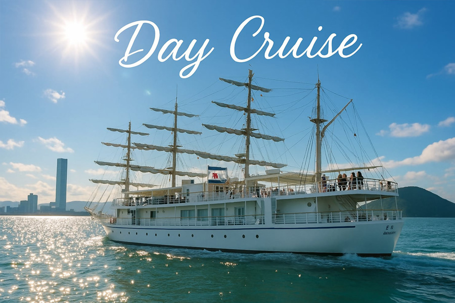 世界の宝石とも称される瀬戸内海の多島美を眺めるデイクルーズと、瀬戸内海に沈む夕日や瀬戸大橋、高松の夜景を優雅に楽しむサンセットクルーズを、帆船型「日本丸」で満喫しませんか。船内でバイオリンなどの生演奏も楽しめます。